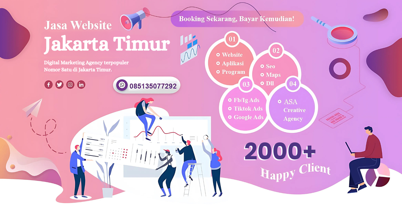 Digital marketing agency terbaik dan terpopuler di Indonesia, telah dipercaya oleh 2000+ klien dari berbagai kota termasuk Jakarta Timur. Jika Anda Membutuhkan Jasa Website Bisnis, Jasa SEO Terbaik, Jasa Iklan Google ADS, jasa Desain Website, jasa Kelola Sosmed dan Layanan Digital Agency lainnya Kami adalah Solusi Paling Tepat.
